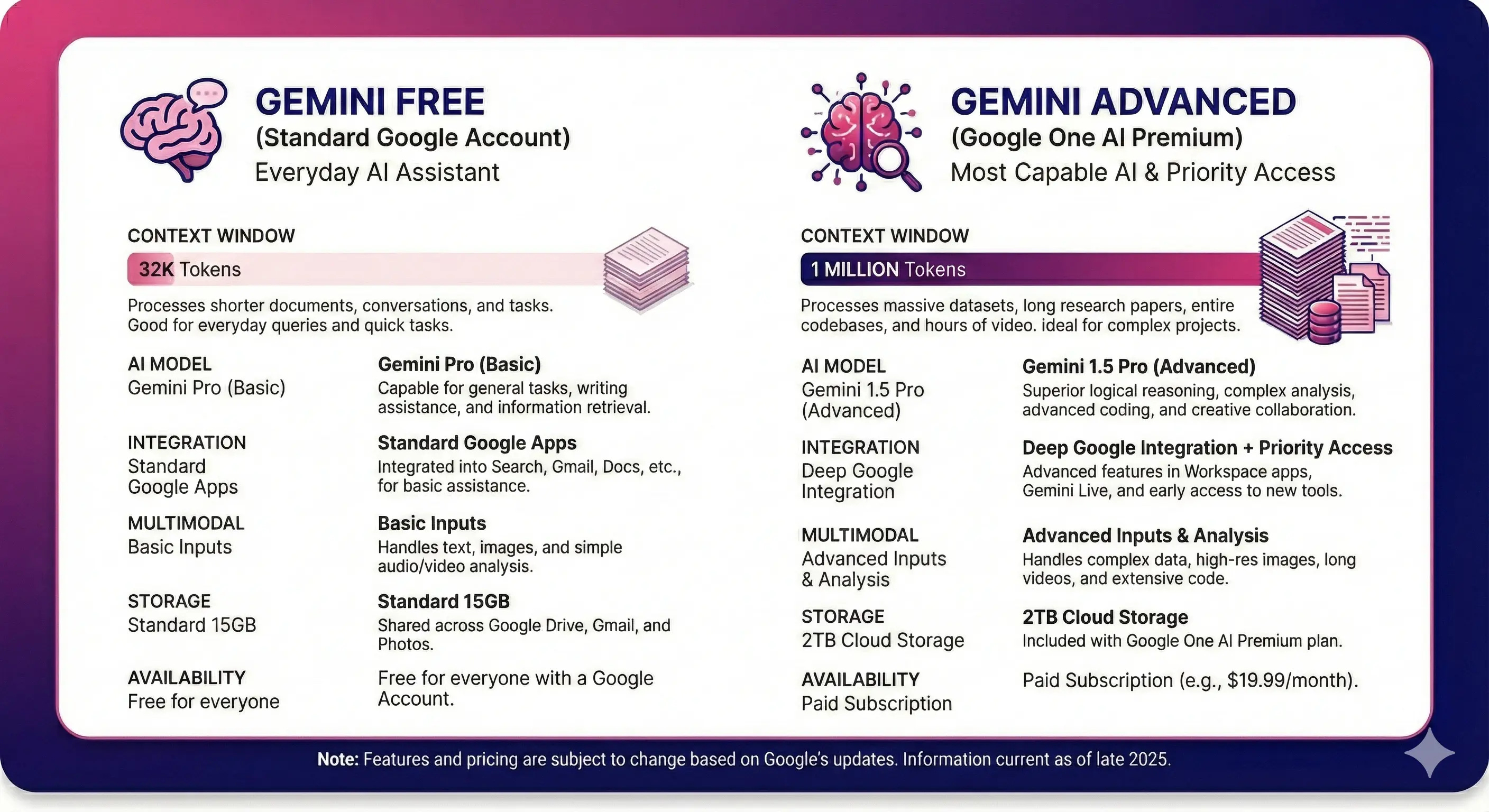 The “Brains”: Free Gemini vs. Gemini Advanced